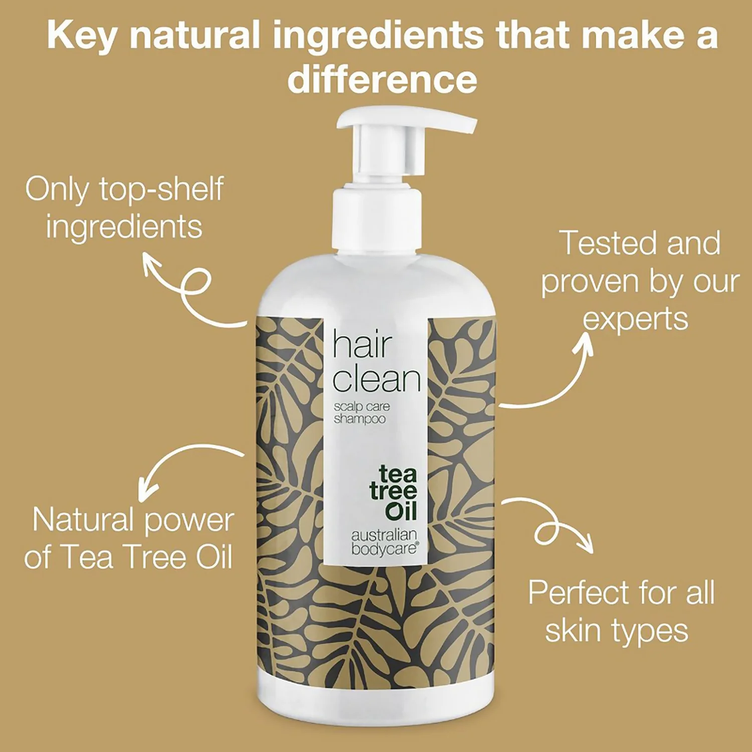 Hair Clean shampoo is a powerful, yet gentle daily shampoo which contains natural Australian Tea Tree Oil. The 100% natural active ingredients in Tea Tree Oil are effective in maintaining beautiful hair and treating scalp conditions such as dandruff, dry and itchy scalp and are perfect for spots and pimples on the scalp.