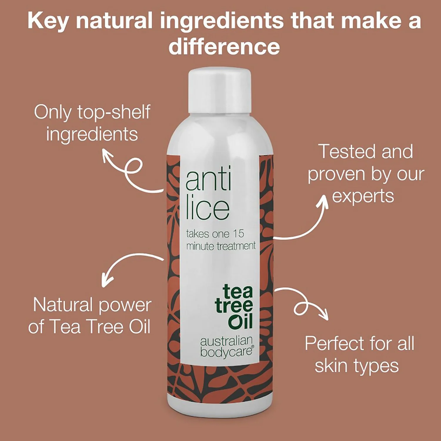 Anti Lice treatment from Australian Bodycare with 100% natural Tea Tree Oil. The nit treatment for head lice is free from insecticides and effectively removes lice and nits in just 15 minutes. The lice treatment encapsulates lice and eggs making them suffocate and die.