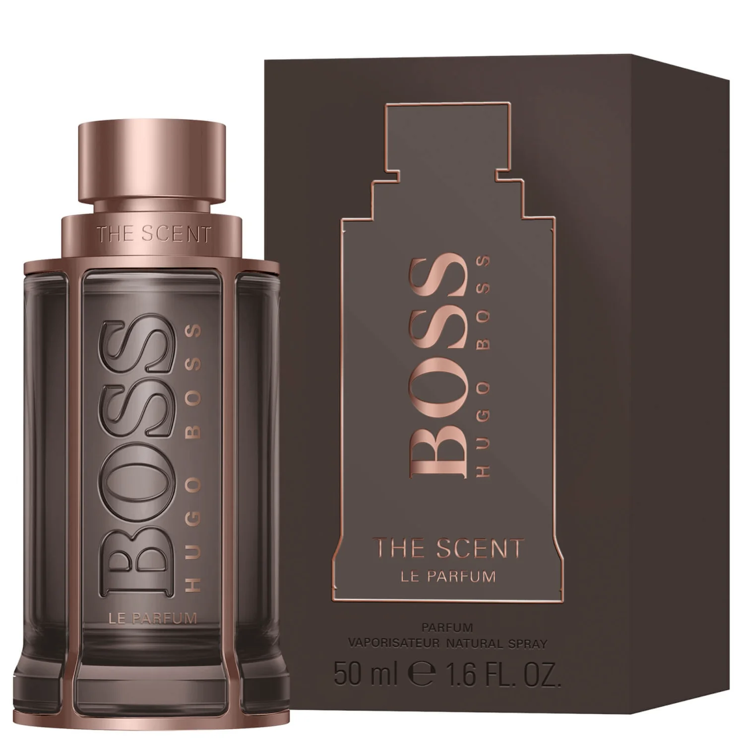 The iconic bottle is lacquered in a sensual shade of taupe and set within a rose gold cage. Presented in a taupe box, BOSS The Scent Le Parfum For Him is a powerful fragrance that takes seduction into a whole new dimension.