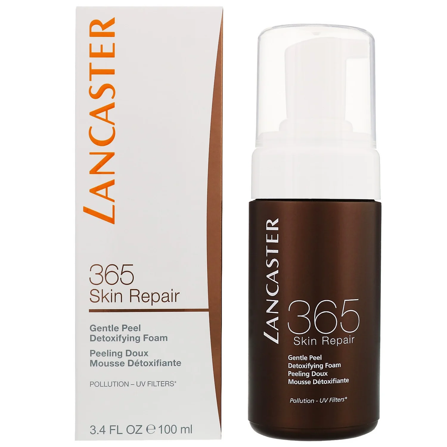 Lancaster 365 Skin Repair Gentle Peel Detoxifying Foam is nightly defence for your skin, it protects, repairs and renews. A smoothing grain-free foam that helps clear skin from pollution and UV filters, detoxifies, resurfaces. Skin is renewed, recovered with a healthy looking glow, each and every day, 365 days a year.