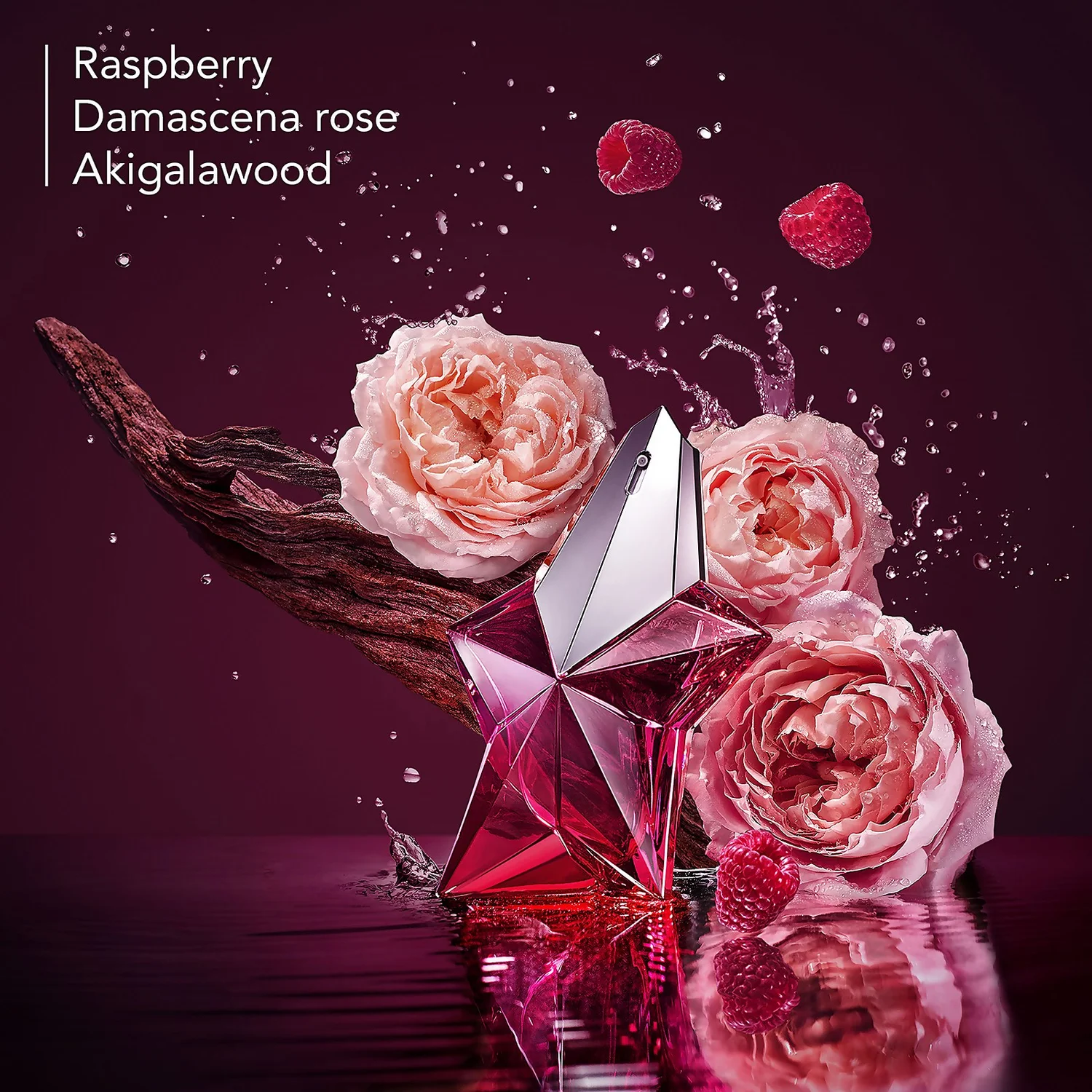 A new fragrance for a modern heroine who turns her dreams into reality and reality into a dream. Angel Nova Eau de Parfum reveals a SUPER-FEMININITY: irresistible, captivating and confident. A fruity, floral and woody Eau de Parfum which opens with an overdose of raspberry combined with notes of lychee for a fruity addiction. The heroine of flowers has been revisited with the creation of a unique Damasc rose.