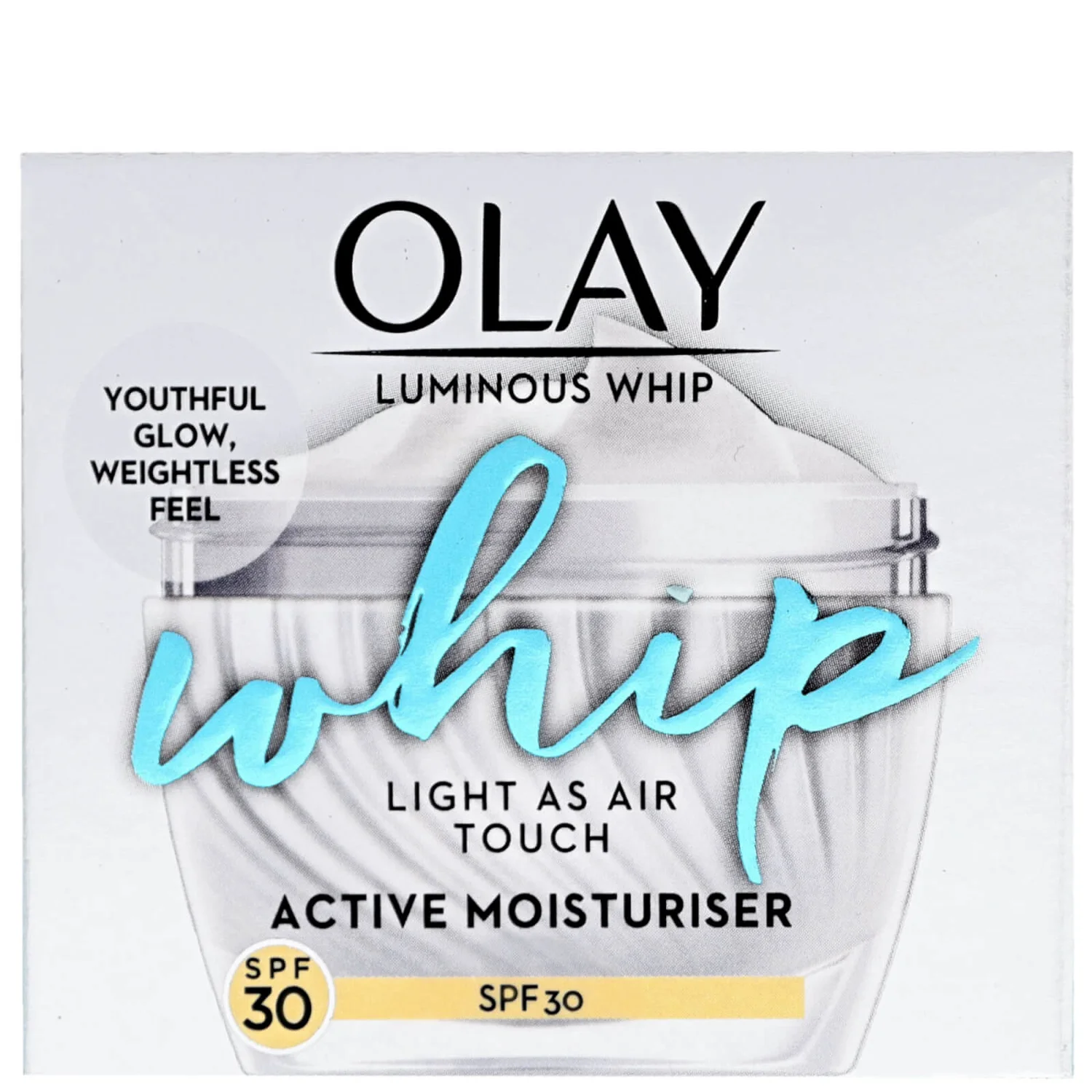 Forget about sticky or greasy feeling SPF moisturisers and have it all with Olay Luminous Whip Hydrating Moisturiser with SPF30. This SPF moisturiser not only protects your skin against harmful UV rays, but also actively hydrates and evens your skin tone, reducing the look of pigmentation for glowing, smooth and soft skin.