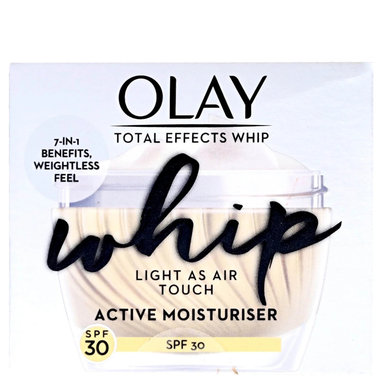 Forget about sticky or greasy feeling SPF moisturisers and have it all with Olay Total Effects Whip Moisturiser with SPF30. Our Vitamin C Face Cream not only protects your skin against harmful UV rays, but also actively hydrates and evens your skin tone for glowing, smooth and soft skin.