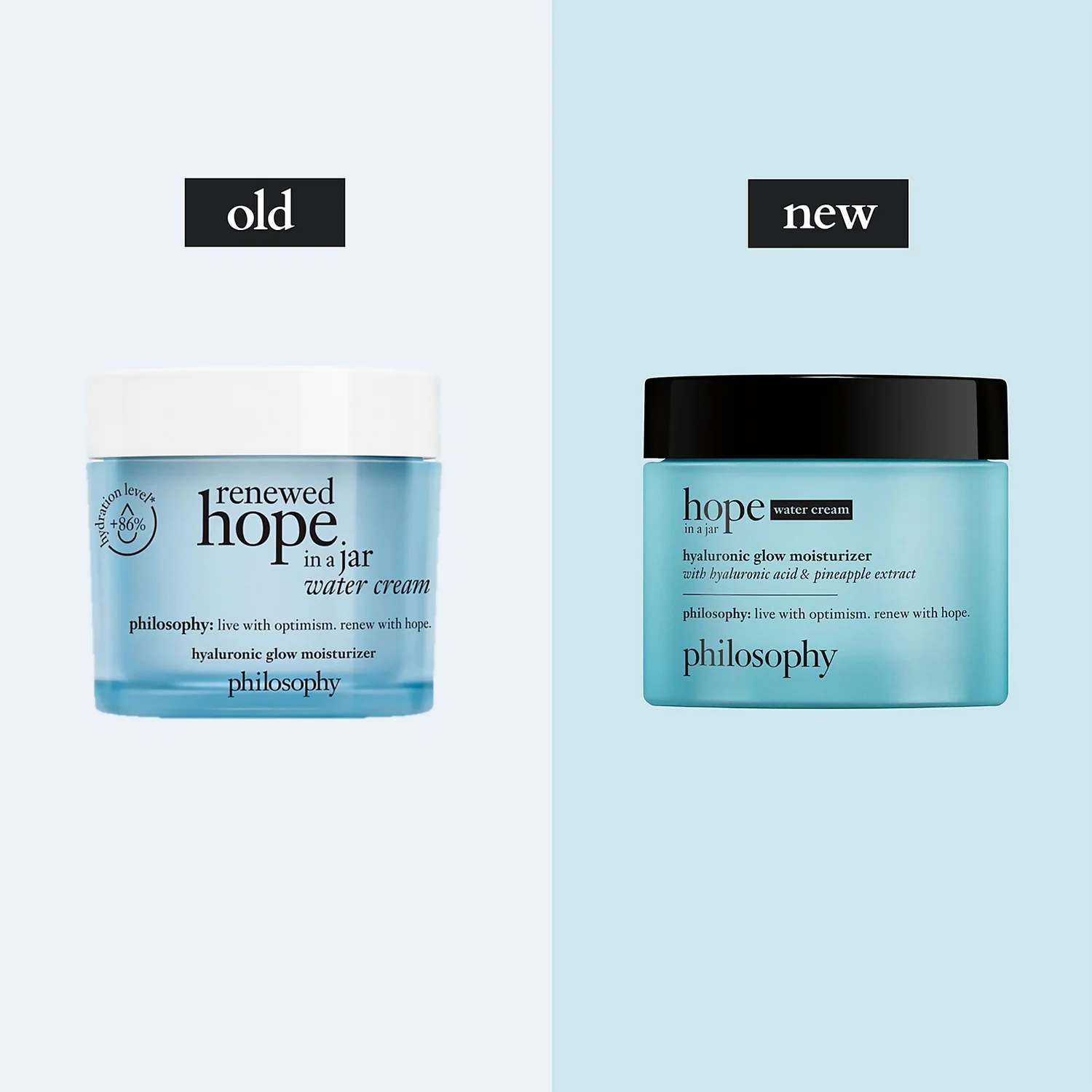 Hydrate, glow, & go! The innovative, lightweight, and fast-absorbing texture of the Hope In A Jar Water Cream replenishes parched skin with a cooling burst of moisture. Formulated with philosophy’s exclusive hydra-glow complex containing Norwegian glacial water, enhanced hyaluronic acid and pineapple extract, the skin feels infused with moisture and smooth to the touch.