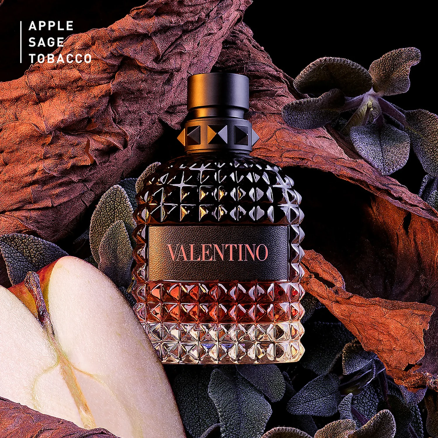 An amber fruity fragrance built in the contrast of tobacco accord and crunchy red apple accord.