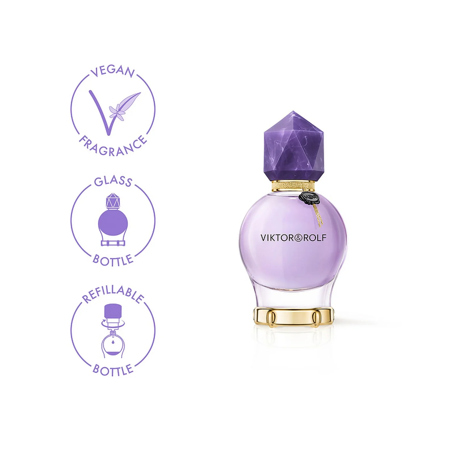 The mysterious potion is sealed with a Viktor&Rolf iconic seal and topped with a facetted stone cap evoking the powerful amethyst stone, with the power to connect you to your spiritual self.
