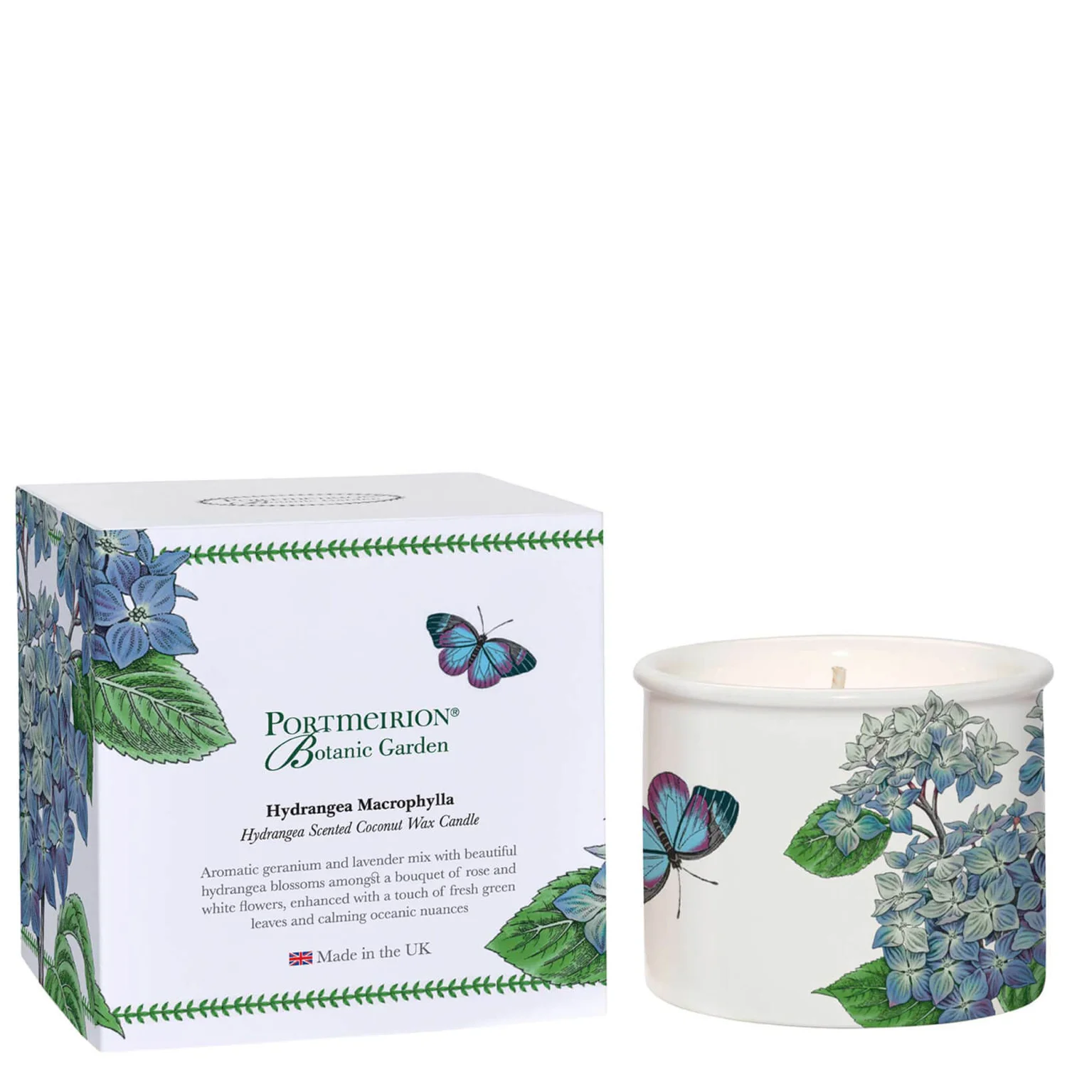 Hydrangea is an aromatic herbal fragrance with notes of geranium and lavender mixed with bright and fragrant Hydrangea petals and a touch of calming oceanic nuances.