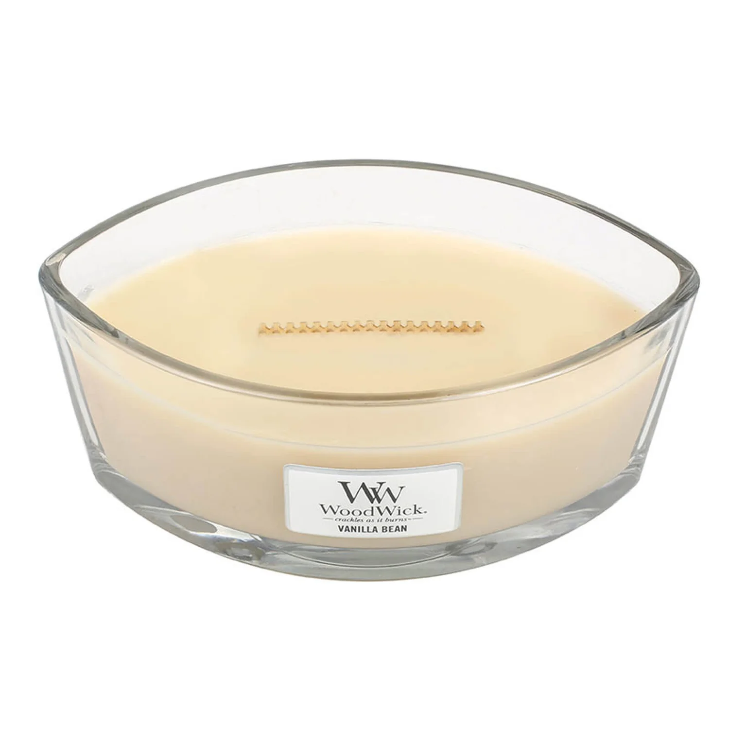 This is WoodWick’s top-quality genuine Hearthwick Candle – Famous for its soothing sound of a crackling log fire when burning, these luxuriously scented candles will burn for up to 80 hours. Hearthwick Flame Scented Candles by WoodWick let you experience the cosy comfort of a glowing fireplace anywhere in your home with its soothing crackle and long, dancing flame. Made of a high-quality soy wax blend which produces a slow, clean burn and is available in a wide variety of fragrances. The candle top also doubles as a heat-resistant mat.