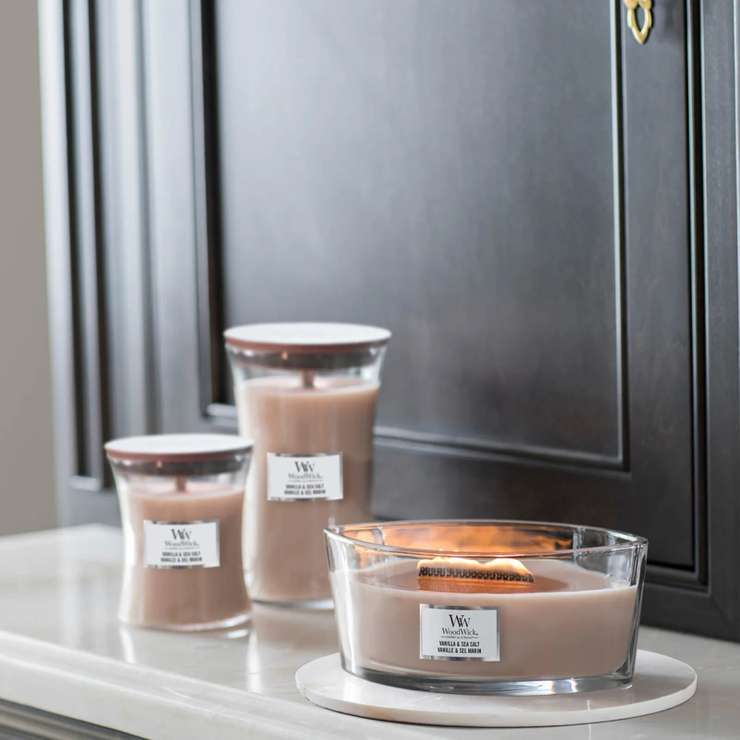 This is WoodWick’s top-quality genuine Large Jar Candle – Famous for its soothing sound of a crackling log fire when burning, these luxuriously scented candles are our largest available and will burn for up to 180 hours. Made of a high-quality soy wax blend which produces a slow, clean burn and is available in a wide variety of fragrances. The candle top also doubles as a heat-resistant mat.