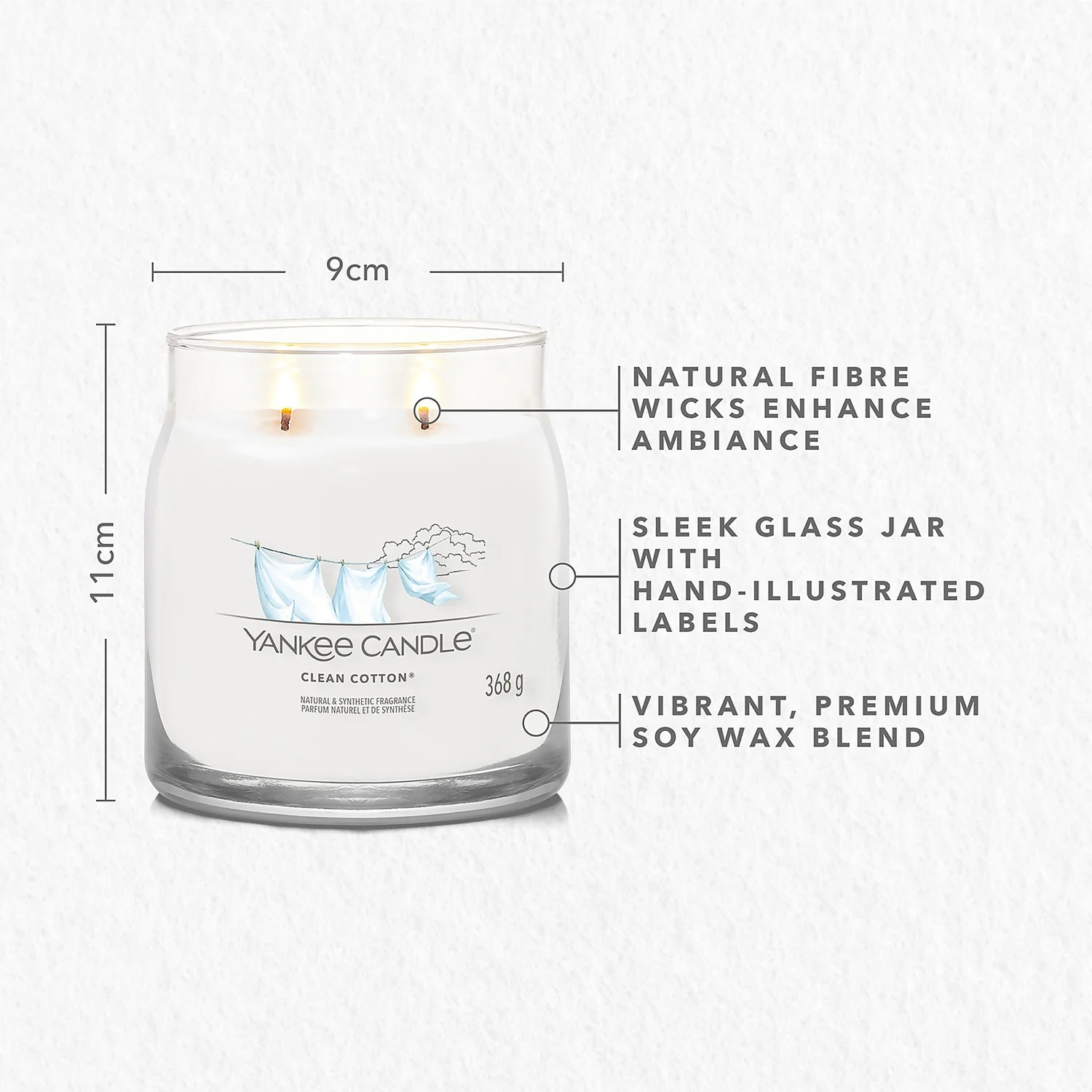 Experience the Yankee Candle brand, totally reimagined. This refreshing take on the iconic Jar shape is designed to create the best experience to date. Two cotton wicks and a premium soy-wax blend provide a beautiful ambience.